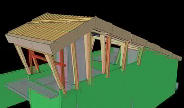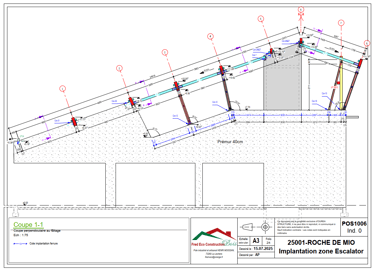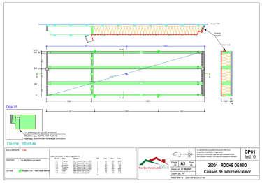 Réalisation complète de la modélisation 3D, des plans d’exécution (EXE) et des plans PAC de la structure bois pour la construction d’un bâtiment d’accueil du public et des locaux d’exploitation de la télécabine. Fourniture également de la note de calcul et de la modélisation 3D pour la façade rapportée « blocs rochers ».