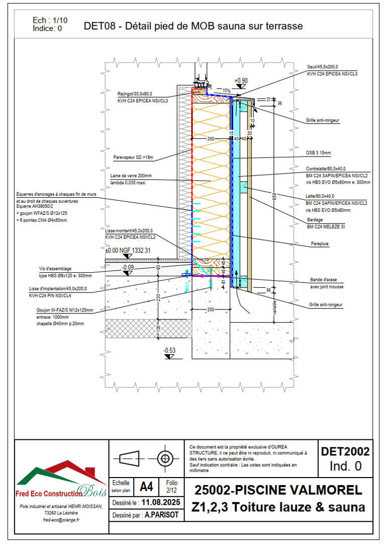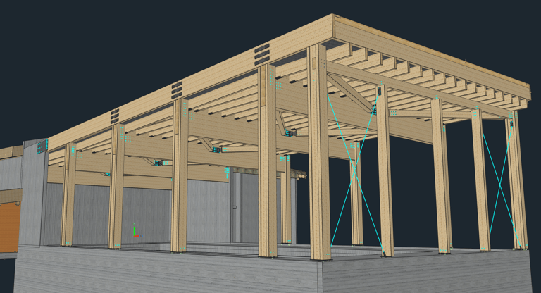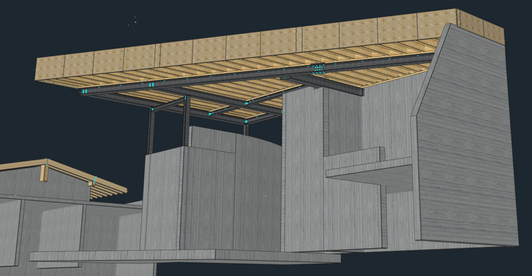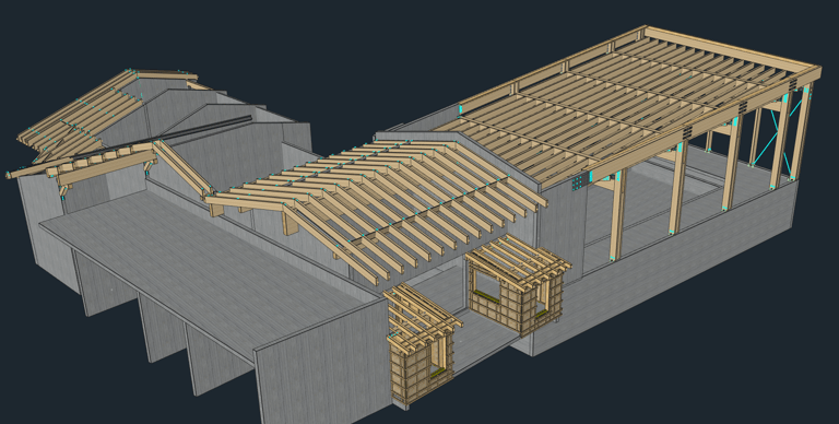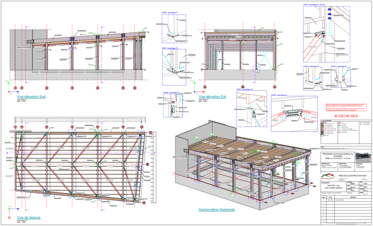 Réalisation de la maquette 3D et des plans d’exécution (EXE) de la structure bois/métal pour la création d’un nouveau bassin intérieur et l’extension du bâtiment existant. Conception de portiques lamellé-collé avec toiture adaptée aux conditions montagne, gestion de l’interface structurelle avec l’existant, et modélisation de l’auvent métallique en porte-à-faux.